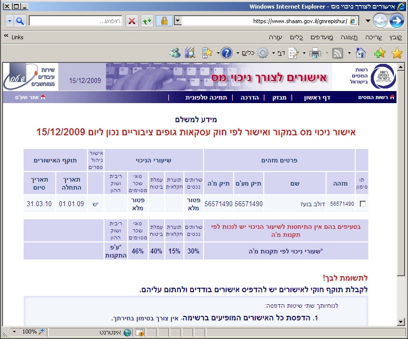 לפי בדיקה, דולב גם השיג פטור מלא מניכוי מס במקור, על פי הבדיקה, ליותר מתקופה