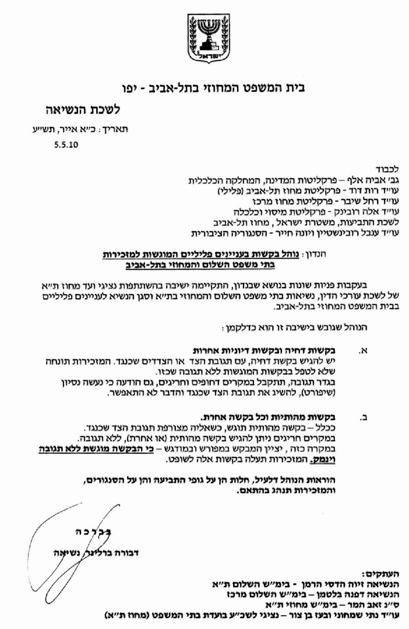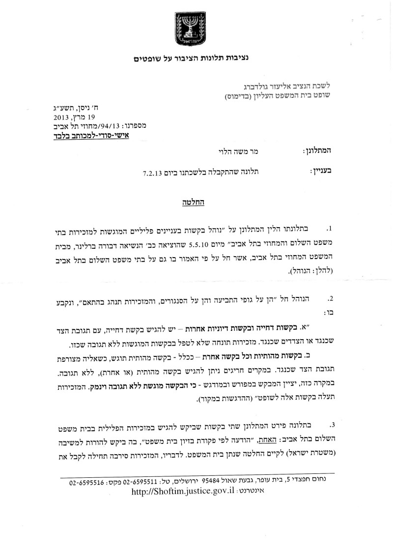 נוהל שקבעו השופטות ברלינר והדסי-הרמן - לא חוקי נציב התלונות על שופטים יוצא נגד נוהל המיושם בבתי משפט השלום והמחוזי בתל אביב, המחייב הגשת בקשות בתחום הפלילי בענייני מעצר וחקירה בצירוף תגובת המשטרה. הבעיה: המשטרה מסרבת למסור תגובה כשהעצור לא מיוצג בידי עורך דין. התלונה הוגשה במקור על ידי משה הלוי הלמו halemo